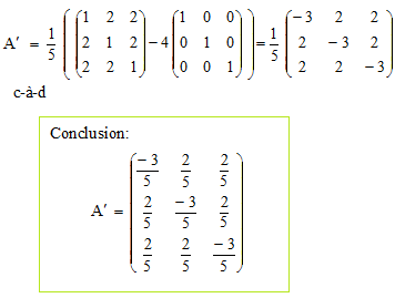 3. Déterminer la matrice A ' telle que A × A ' = I