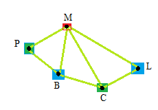 On a : P ( 17 B ) ← M (13 B ) ← B (8 C ) ←C (5 D) ←D ( 0 )