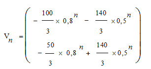 Alors : M x Vn = M x Mn x V0 = Mn + 1 x V0