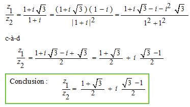 • On a : | z1 | = √ ( 12 + ( √ 3 )2 ) = √ 4 = 2