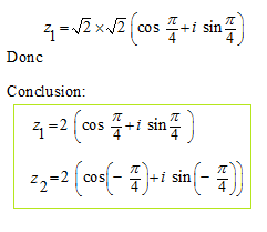 Ainsi z1 = √2 + i√2 et z2 = √2 - i√2